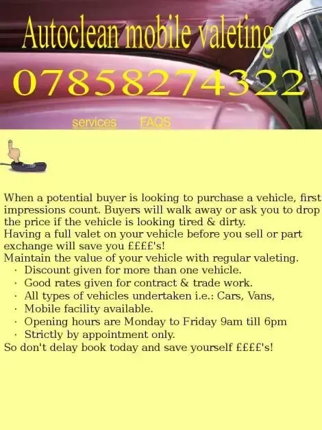With over 20 years experience in car valeting I've built up a very good reputation with many returning customers and welcome local business trade too.